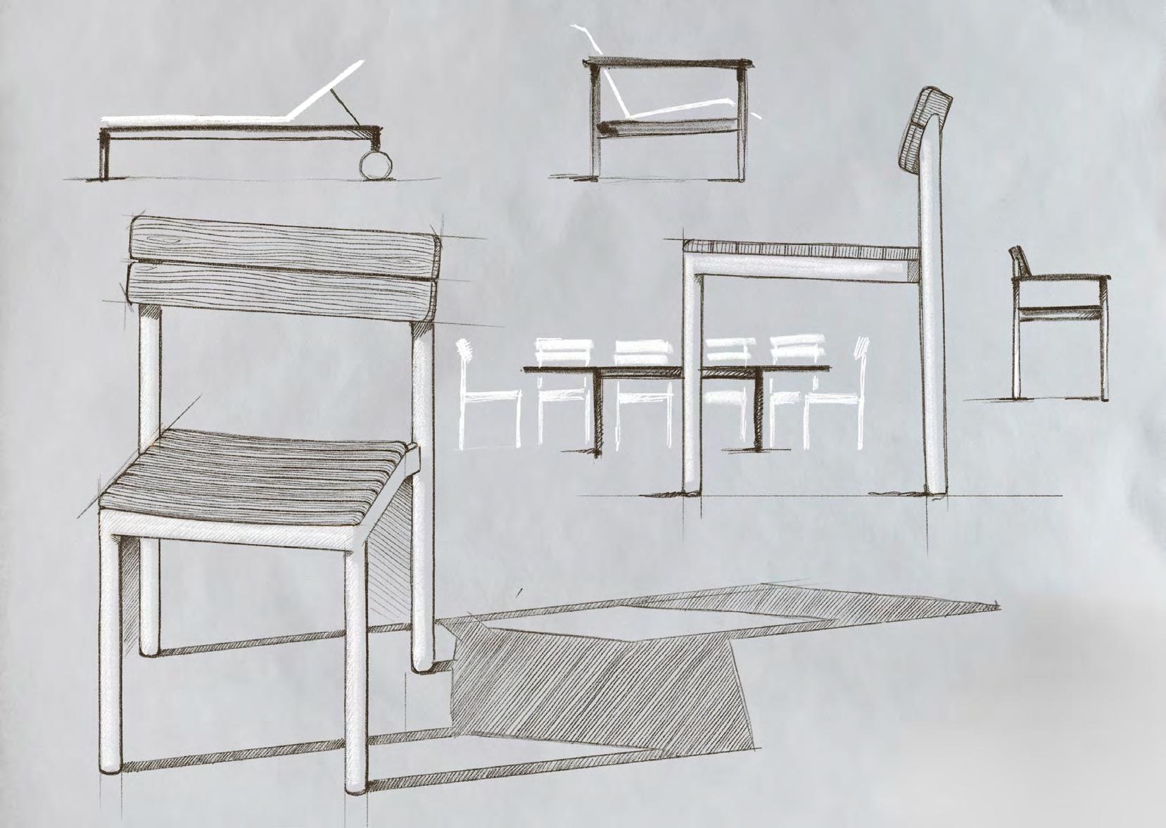 “The name ‘Between Lines’ emerged from observing how light moves through the chair’s lines. The shadows on the ground became a natural extension of the design, constantly changing depending on light and surroundings.”