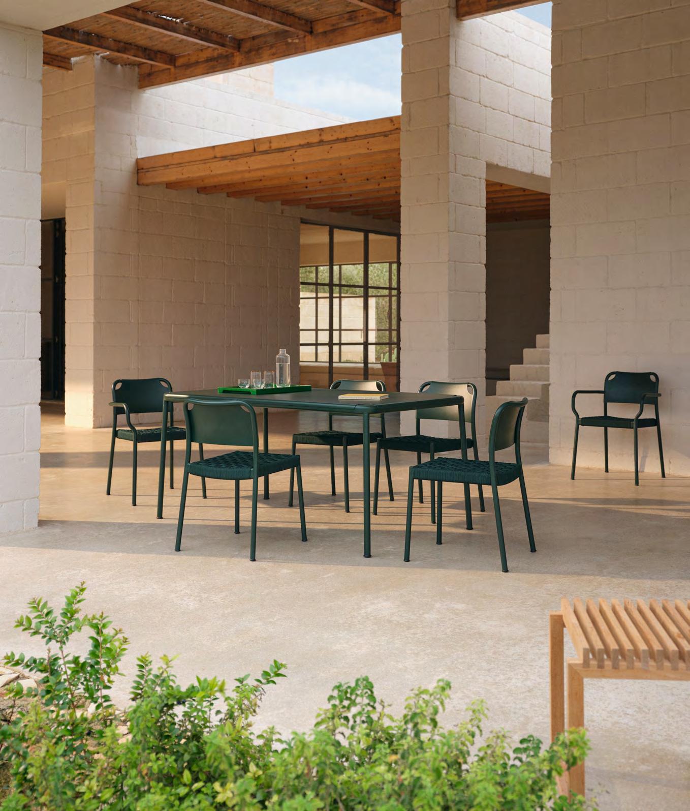 Aluminium is used in several of our outdoor furniture series for its strength, light weight, and resistance to corrosion. The material performs reliably outdoors and can be recycled.