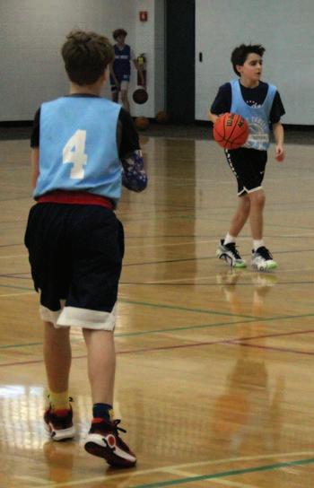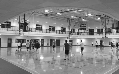 When the divider curtain is down, half the gym is a full-size high school basketball court with bleacher seating for spectators