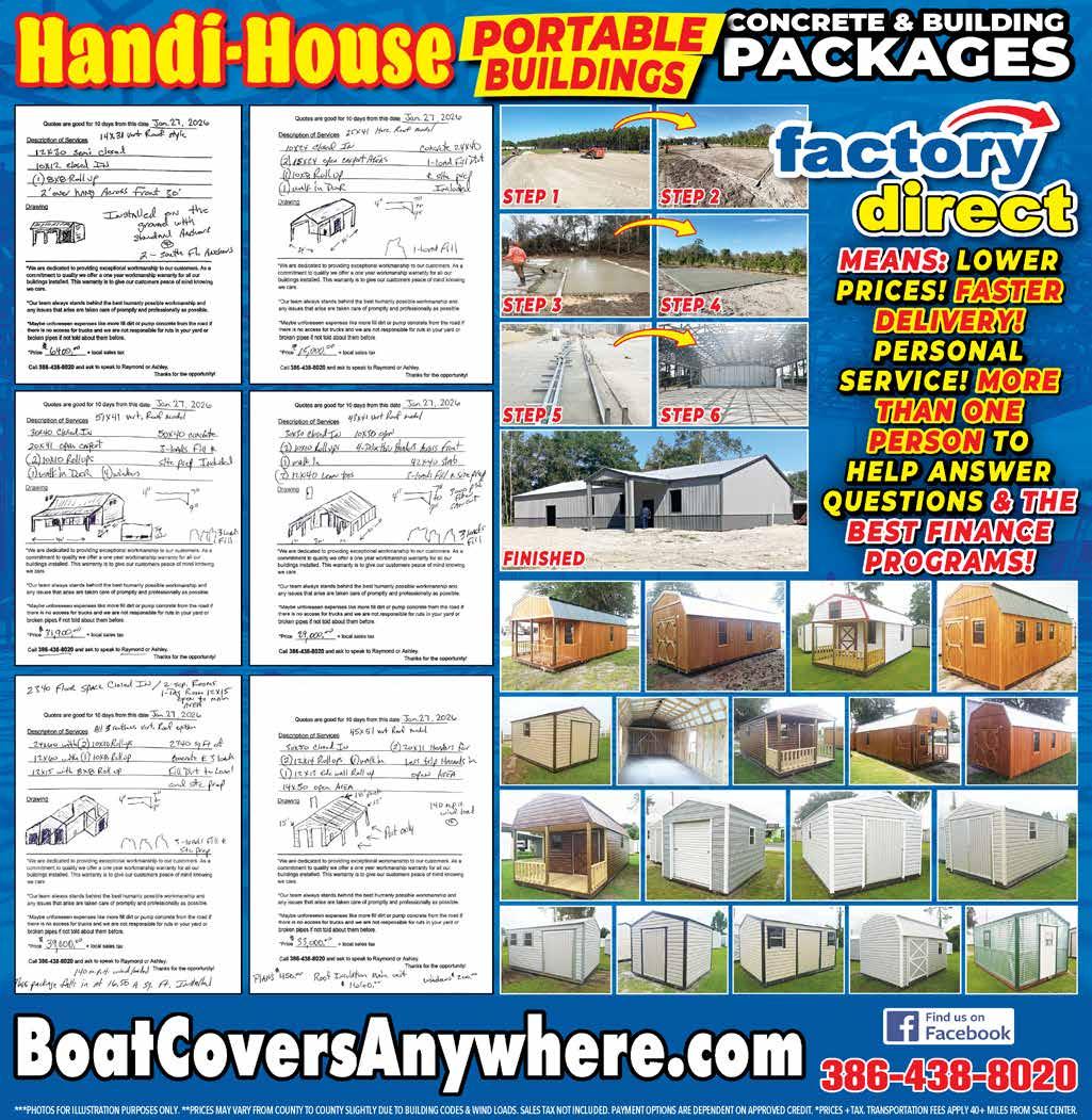 Seamless Gutter, Screen rooms, patio, deck, soffit, fascia, repairs. A&D Exteriors Lic. & Ins. 386-288-8708 | 386-288-8629. (C1/28)