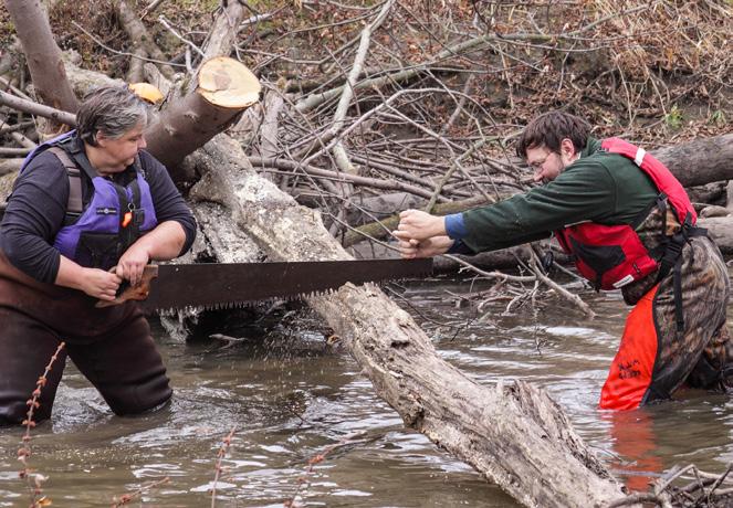 The group removes trash to create safer passage for paddlers. Besides everyday items, volunteers have pulled the remains of a 1948 Chevy pickup truck, bicycles, picnic tables, safes and many tires from the river.