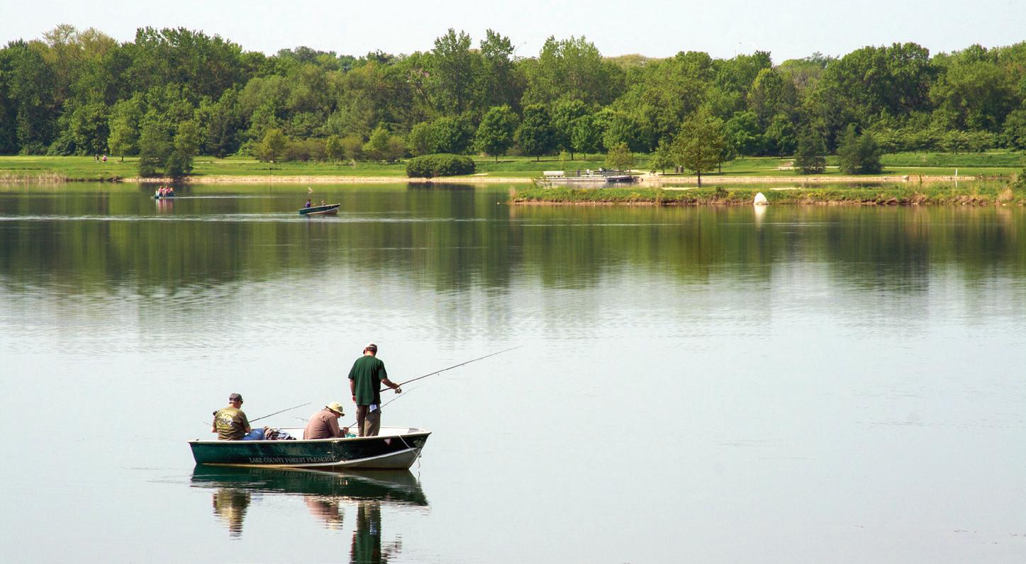 Fishing is allowed in any Forest Preserves waterway unless a sign prohibiting it has been posted. Waterbody sizes vary, from two acres to 129 acres. Fish shown in this guide represent species typically found in each waterbody. Availability may vary. Learn more: LCFPD.org/fishing