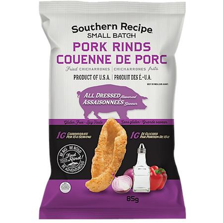 Southern Recipe Small Batch pork rinds are no ordinary pork rinds. They are lightly fried in sunflower oil to enhance the natural flavours and create an addictively crispy texture that you simply can’t find in other brands of pork rinds or salty snacks. With 7g of collagen and 0g of trans fat per serving, they can be enjoyed without remorse!
