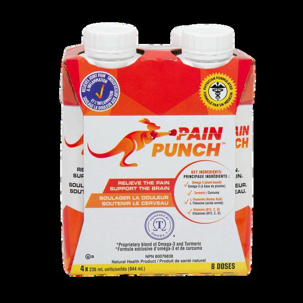 Formulated by a Physician, Pain Punch is a turmeric and omega 3 liquid anti-inflammatory supplement that is effective, fast, and convenient. It also contains essential vitamins, B12, C, and D and amino acids, L-theanine, and taurine. It is helpful for those suffering from joint pain and arthritis. It is also beneficial for athletes to help reduce muscle pain and inflammation after exercise. In a convenient 236ml bottle, you can now skip the pills and just drink your daily supplements.