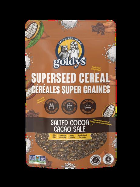 Goldy’s Superseed Cereal is a healthy take on breakfast cereal, made from a nutrient-rich blend of chia, hemp, pumpkin and buckwheat. By mixing with hot or cold milk or water, this versatile super seed mix transforms into a crunchy, creamy cereal, ready to enjoy in under 5 minutes! With natural flavours from real food ingredients, it’s breakfast re-imagined!