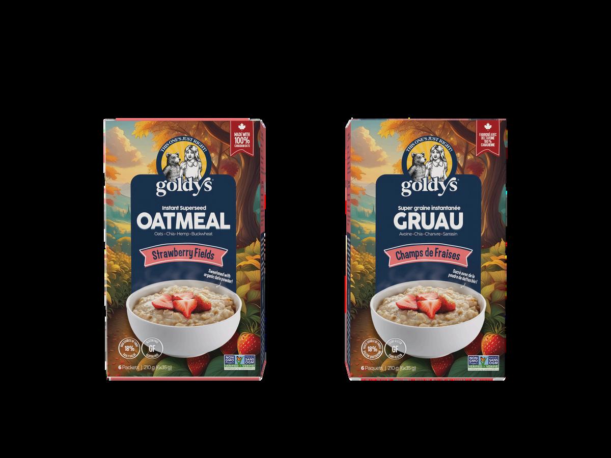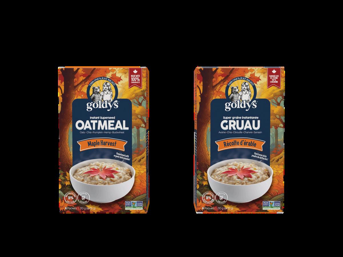 Goldy’s Instant Oatmeals are a healthy take on this convenient breakfast staple, made from glyphosate-free Canadian oats plus a nutrient-rich blend of chia, hemp, pumpkin and buckwheat. Lightly sweetened with low glycemic date sugar and natural flavours from real food ingredients, it’s breakfast re-imagined!