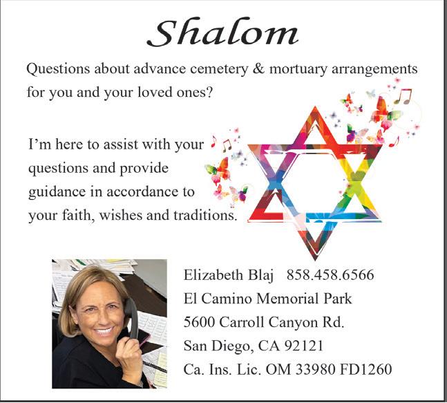Diane Benaroya: dianeb@lchaimmagazine.com L’CHAIM SAN DIEGO, LLC (858) 776-0550 P.O. Box 27876, San Diego, CA 92198