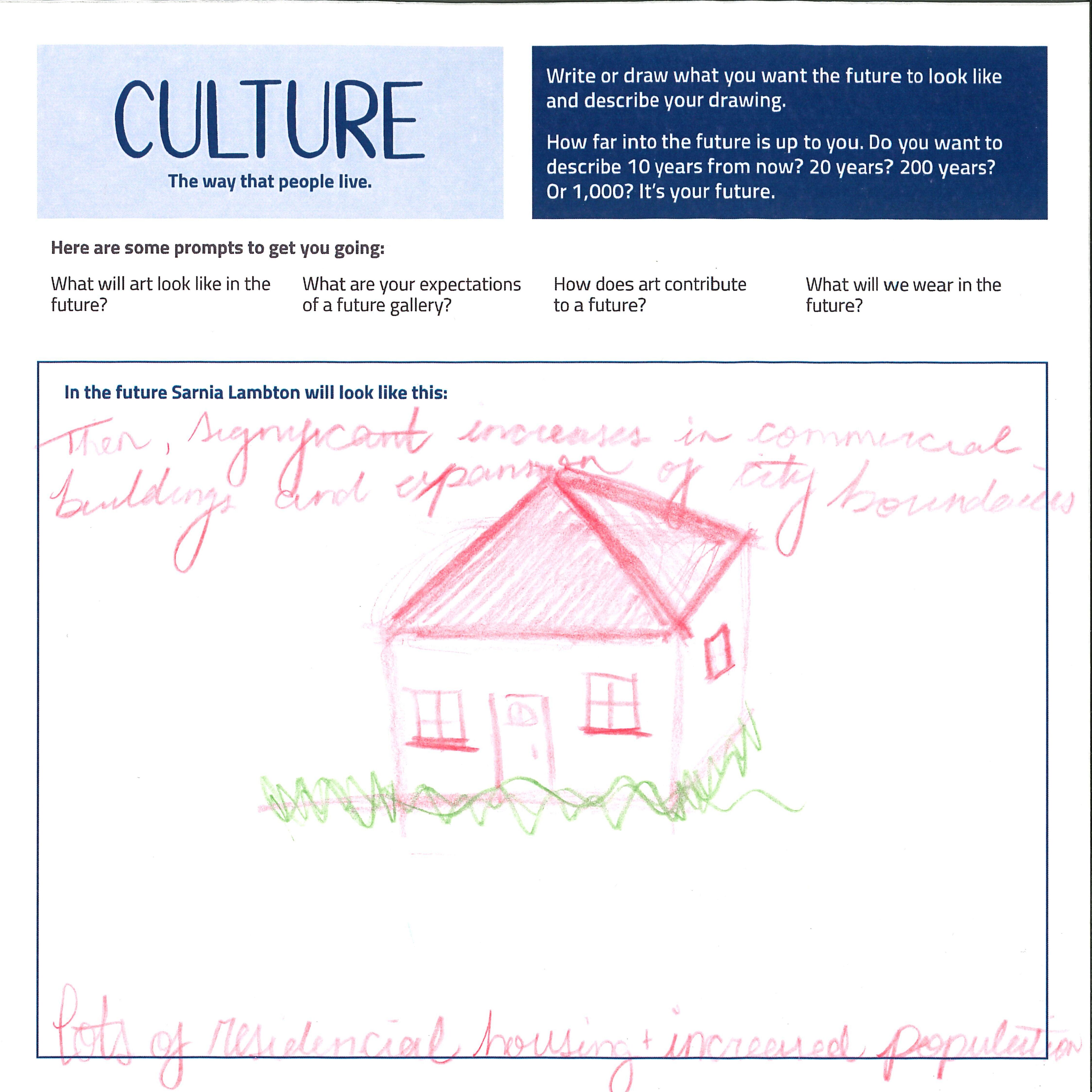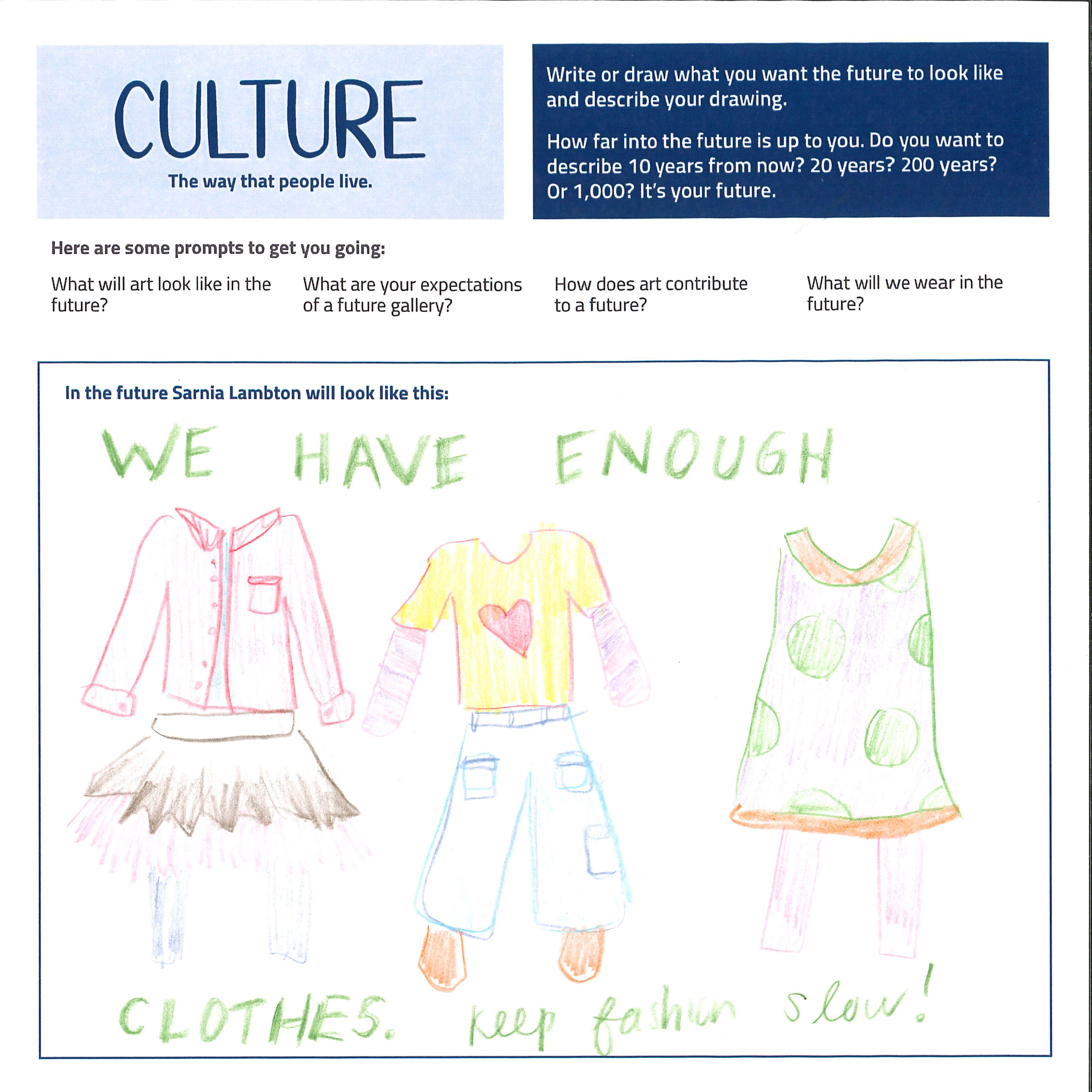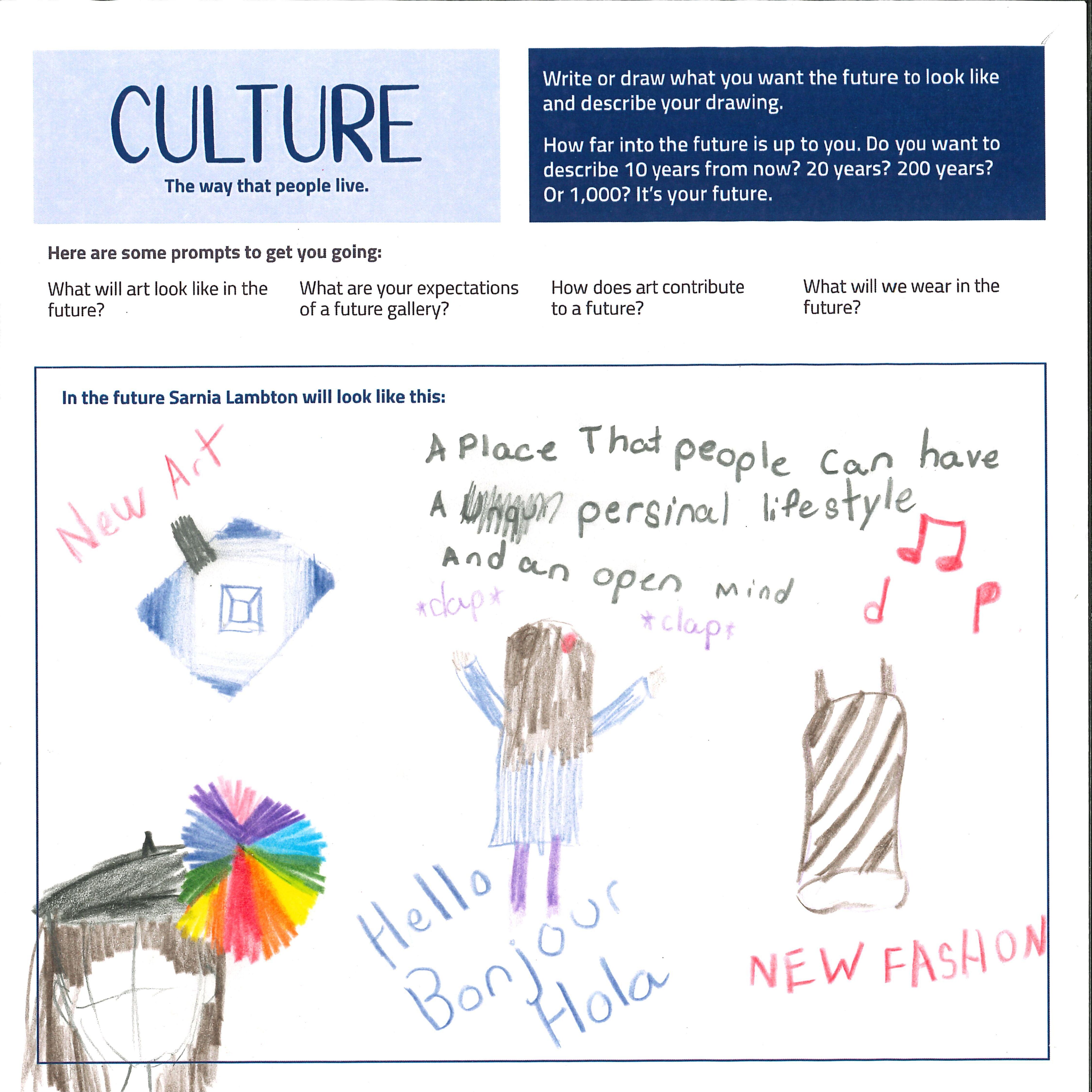 Participants created drawings of what they believe Lambton County will look like 10, 1000, or even 10,000 years from now. A selection of the 'culture'
