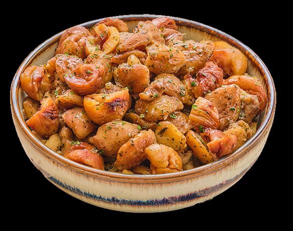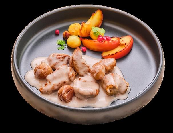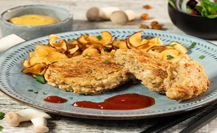 De la viande de filet de poulet, garnie d’un cœur fondant, enrobée d’une chapelure croustillante