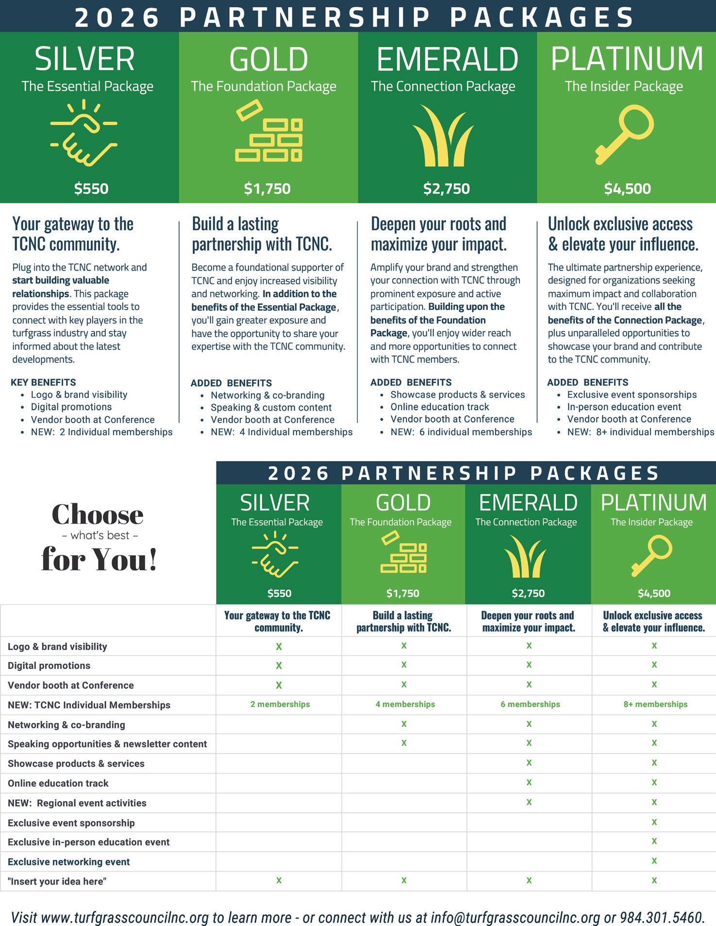 If you'd like to learn more about the Deluxe Membership, please contact the TCNC office at 984.301.5460 or info@turfgrasscouncilnc.org.