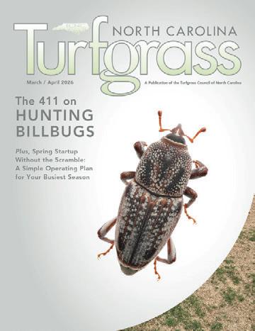 The Turfgrass Council of North Carolina (TCNC) serves its members in the industry through education, promotion and representation. The statements and opinions expressed herein are those of the individual authors and do not necessarily represent the views of the association, its staff, or its board of directors, North Carolina Turfgrass, or its editors. Likewise, the appearance of advertisers, or TCNC members, does not constitute an endorsement of the products or services featured in this, past or subsequent issues of this bimonthly publication. Copyright © 2026 by the Turfgrass Council of North Carolina. North