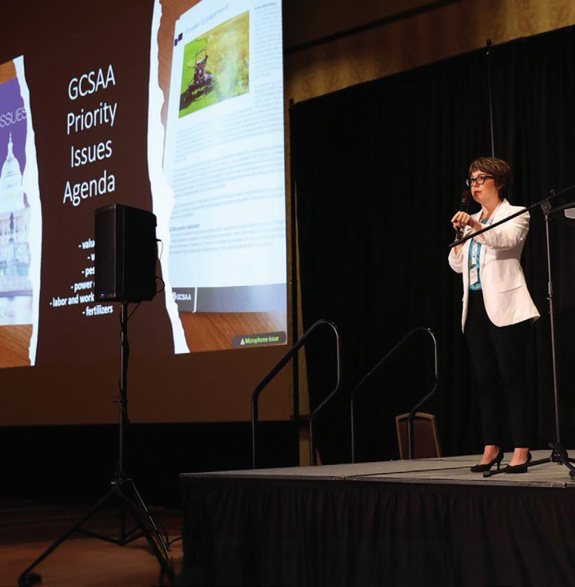 Getting national updates from Chava McKeel of GCSAA about Governmental Affairs, addressing advocacy efforts shaping the future of the golf industry.