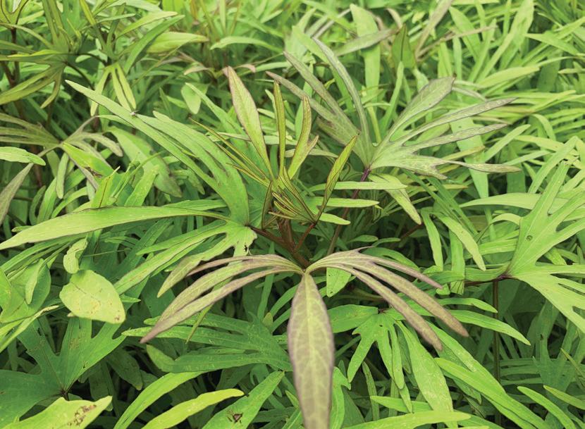 Ipomoea Sweet Caroline Medusa™ Green – Attractive dentated leaves cover this vigorous spreader. It contrasts well with darker colors and produces a robust mound of colorful foliage. (Photo 8)