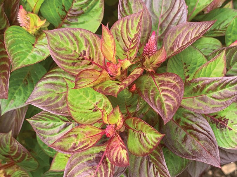 Celosia Sol™ Gekko Green (Fleuroselect Winner) – Eye catching hot pink blooms on multicolored foliage make this coleus extraordinary in the garden. It makes compact mounds that do well all summer. (Photo 9)