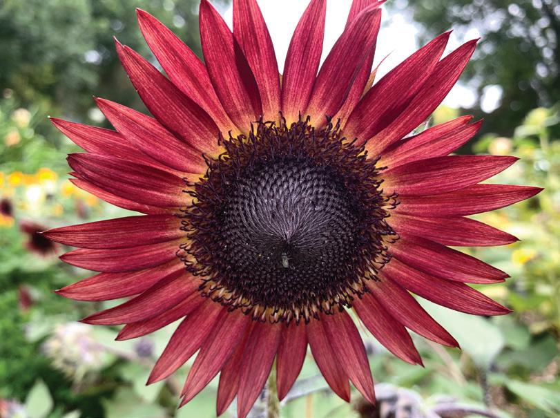 Helianthus Desire Red (Fleuroselect Winner) – Easily grown sunflower with the longest bloom time, and a favorite for the bees. The dark flowers and foliage contrast well with yellow sunflowers that look great in mass plantings. (Photo 11)