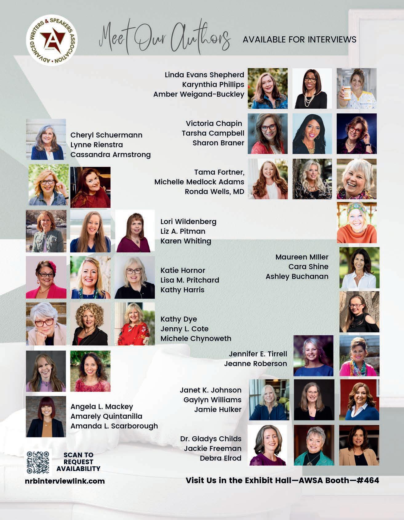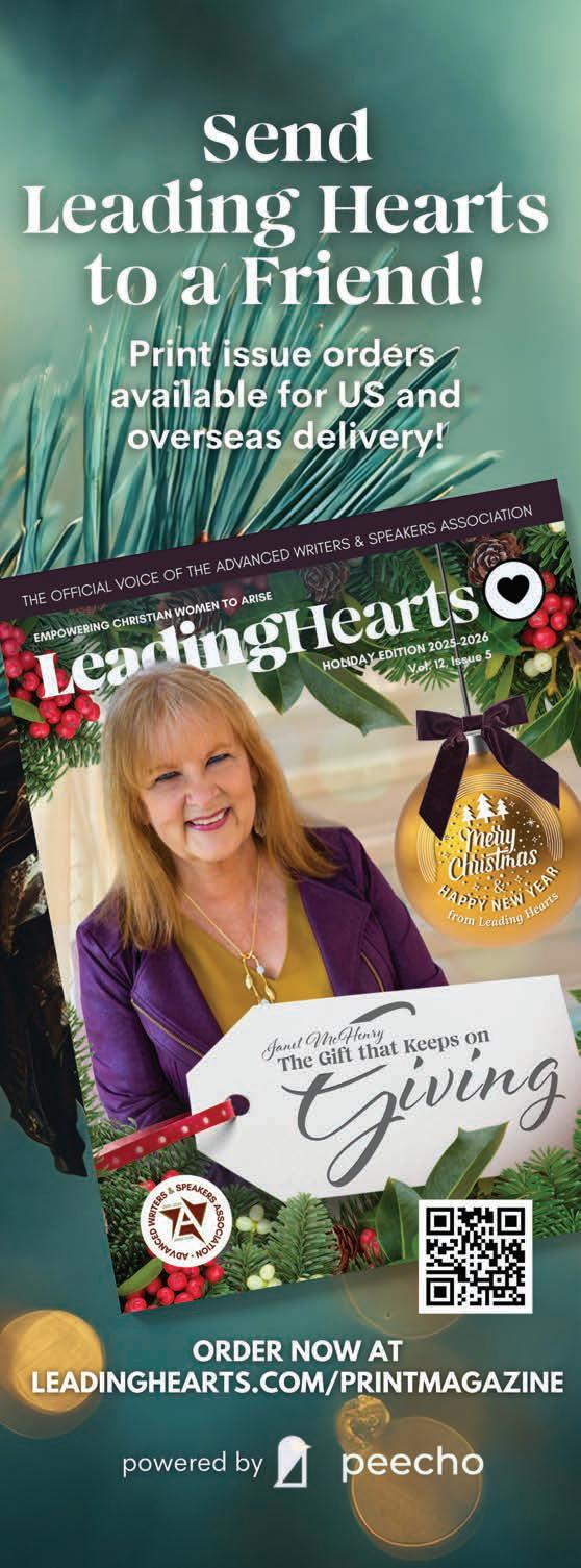 As you explore this NRB issue, I pray these stories inspire you and spark connections. If you’re looking for compelling guests for your media platform, you’ll find a list of AWSA members available for NRB interviews on the back page. We’d love for you to stop by our booth to meet our authors, enjoy our book giveaways, and pick up extra copies of Leading Hearts to bless your team.