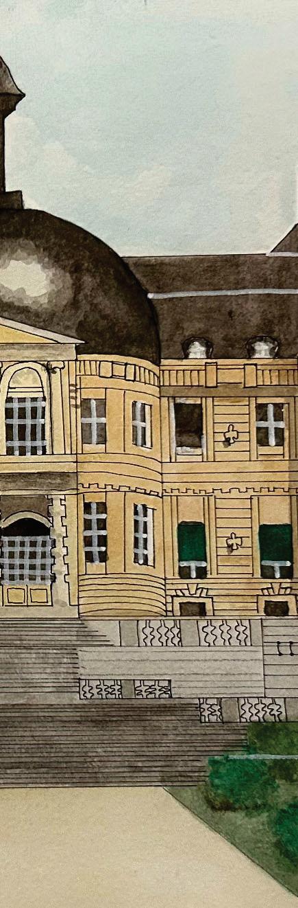 Using watercolors, hand render furniture, buildings, and interiors