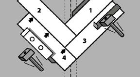 Now repeat the same method with plank (3) and (4). Plank (4) now serves as a stopper for plank (3). Fold down plank (3). Continue this process until you finish the center rows.
