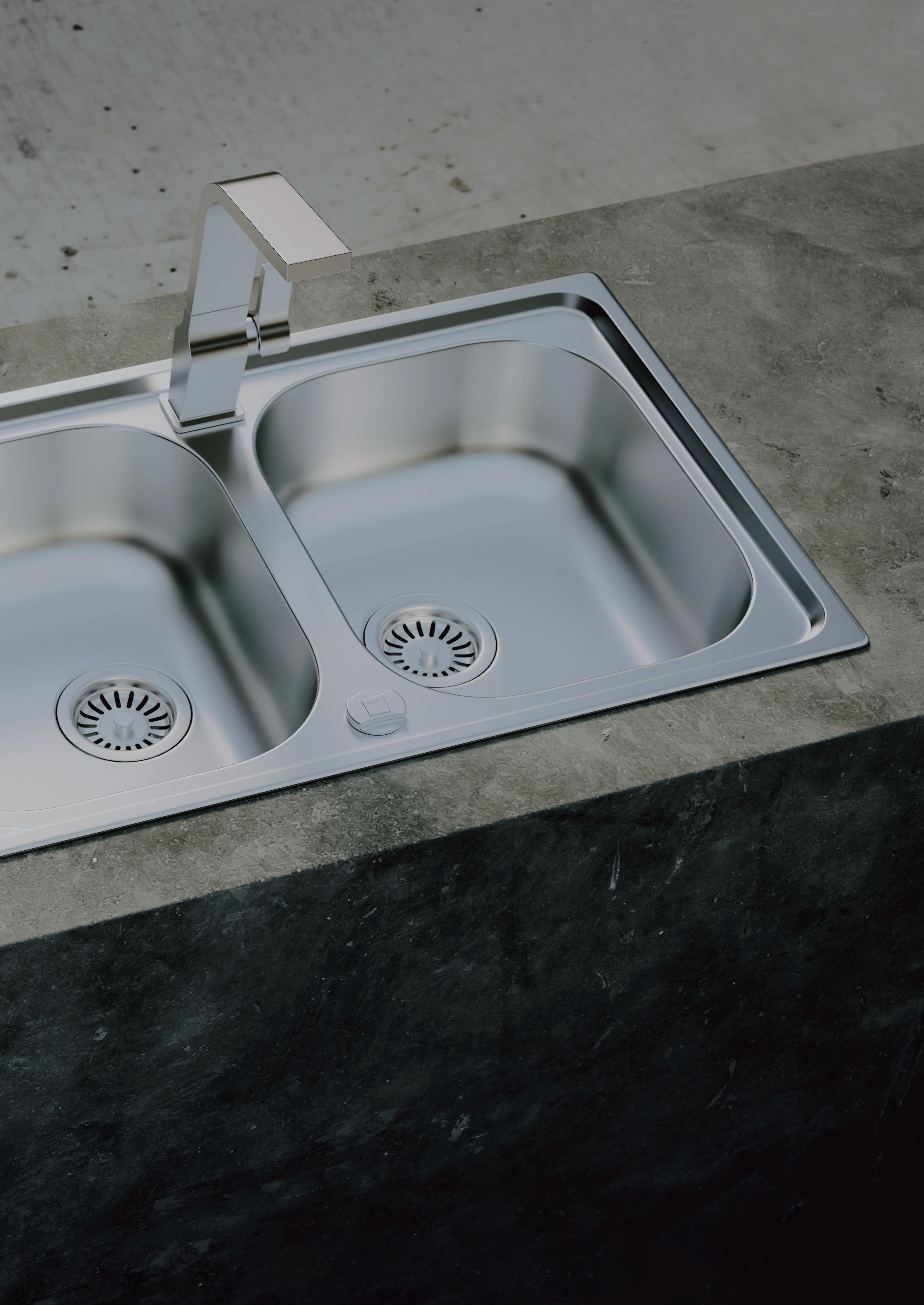 • A new SQ valve to gently cover the square basket waste, providing a refined and attractive touch in the kitchen.