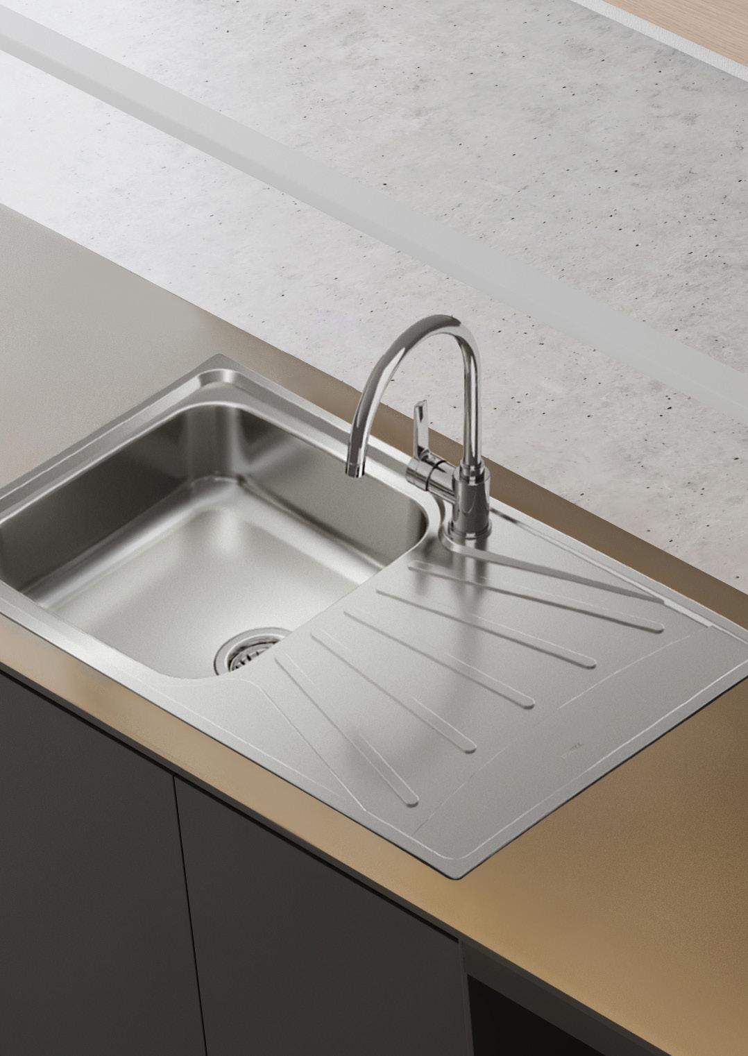 Deciding whether to place the drainer on the right or left will no longer be a problem - you can choose where to locate the drainer for your sink thanks to the different compositions and sizes offered by this new range. In addition, because of its design, water flows away easily, meaning the sink’s condition will be better looked after and it will last for much longer.