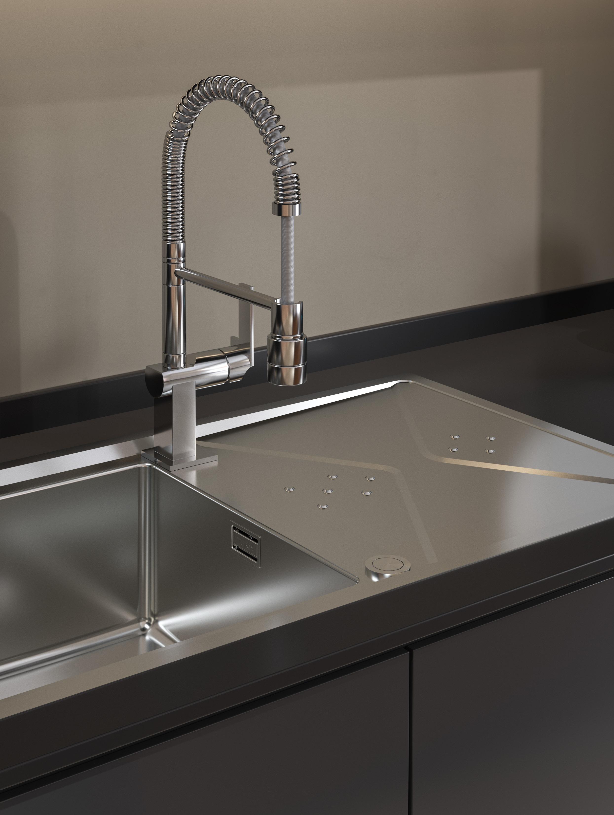 Zenit is not simply another series of sinks. It is a food preparation area with ergonomic accessories perfect to cut, wash, cook, serve, and… enjoy! Its new square-shaped SQ valve combines with the attractive straight lines that bring personality and design to your kitchen, with a professional look and the peace of mind offered by the lifetime guarantee and the new SilentSmart system.