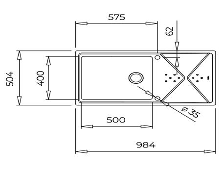 A slimmer rim grants for an accurate positioning of the sink on your countertop. It is suitable for countertops of any material, and it is recommended especially for wood or laminates. Its small rim prevents water spilling onto the countertop.