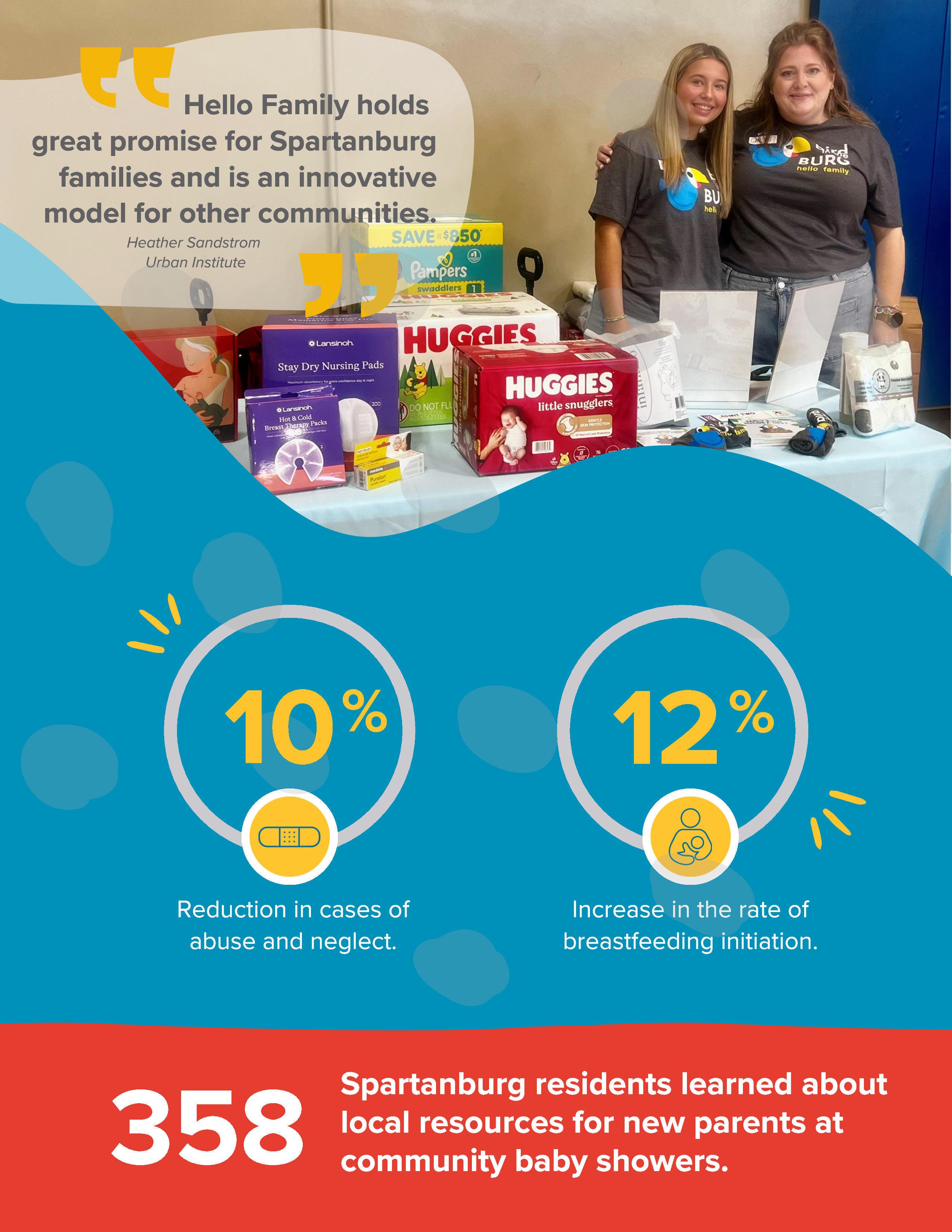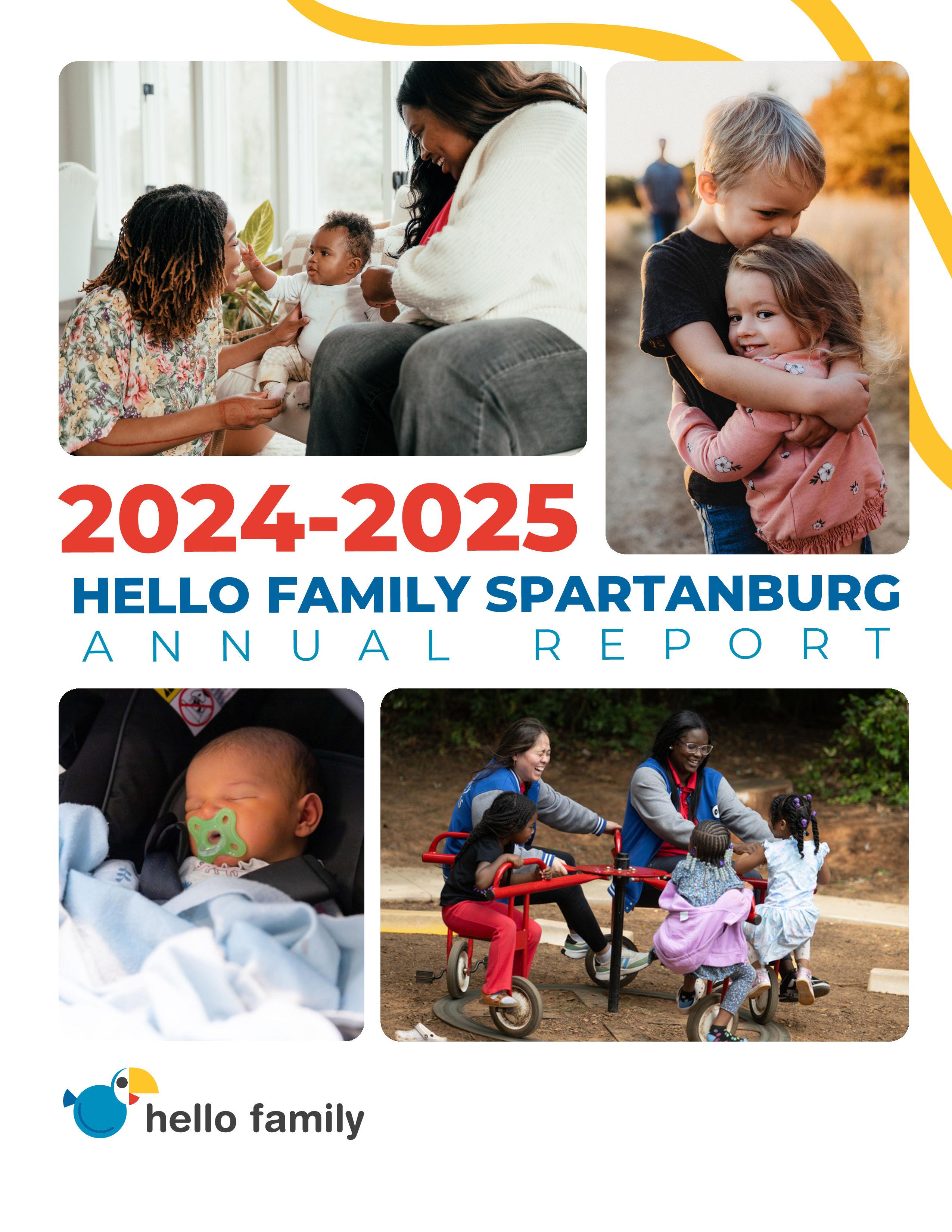 The 2024–2025 Hello Family Spartanburg Annual Report highlights a year of measurable impact, innovation, and community collaboration to support families from pregnancy through early childhood. Through evidence-based programs and a coordinated, data-driven approach, Hello Family continues to improve birth outcomes, strengthen parenting, and expand access to critical resources. This report showcases the collective efforts of partners, providers, and families—and the real progress being made to ensure every child in Spartanburg has a strong start.