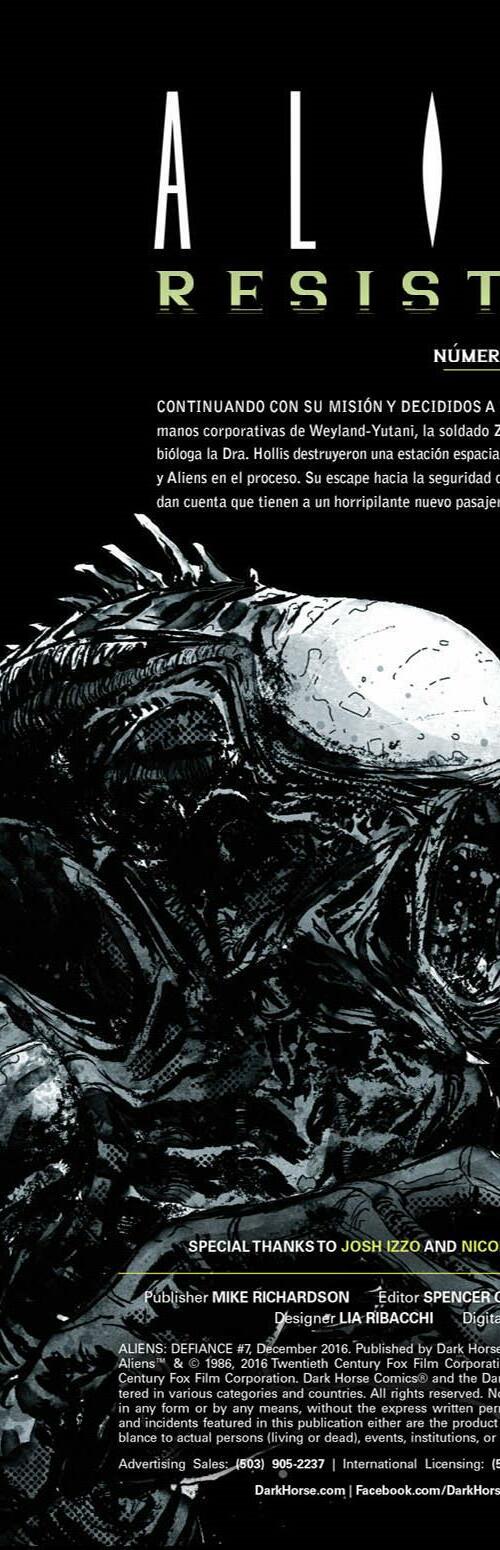 Zula Hendricks es una Colonial Marine que lucha con una lesión en la espalda que la ha limitado en sus funciones como soldado y ha menoscabado su amor propio. Cuando se le asigna la rutinaria misión de fiscalizar una nave abandonada, ve una oportunidad de espantar a sus fantasmas. Oportunidad que se verá acrecentada cuando se tenga que enfrentar a una horda de Aliens. Llegó la hora de probar si Zula Hendricks está a la altura de un Colonial Marine.