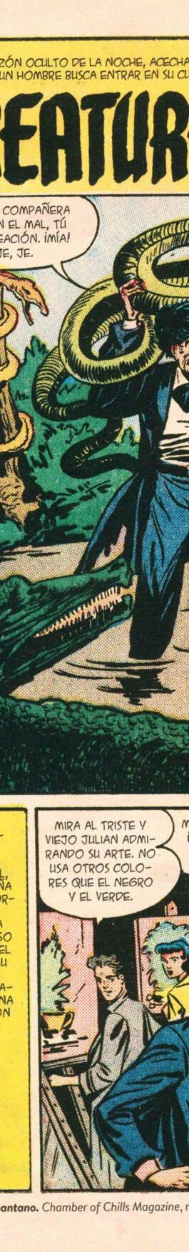 Este quinto volumen de la Biblioteca de Cómics de Terror de los años 50, está dedicado íntegramente a las húmedas Criaturas del pantano. Incluye historietas inéditas en castellano de autores como Basil Wolverton, Harry Harrison, Jack Katz, Lou Cameron y muchos otros.