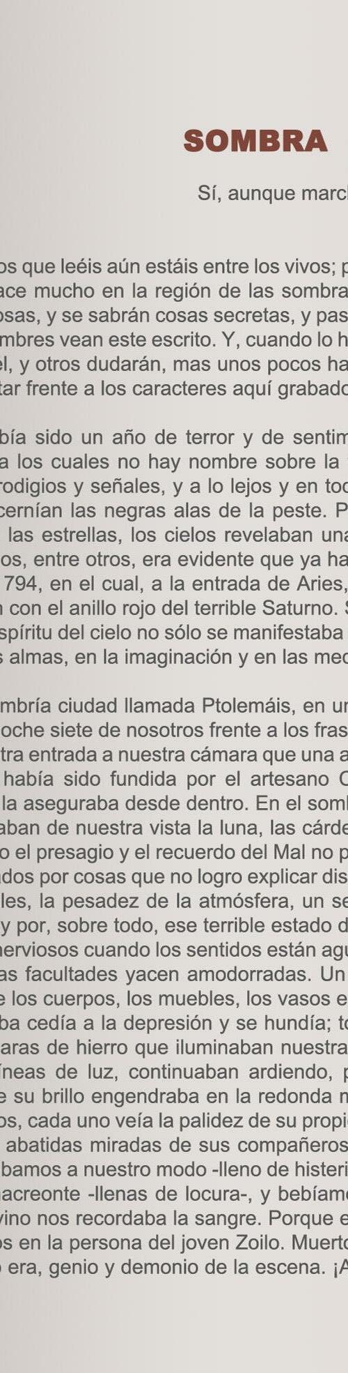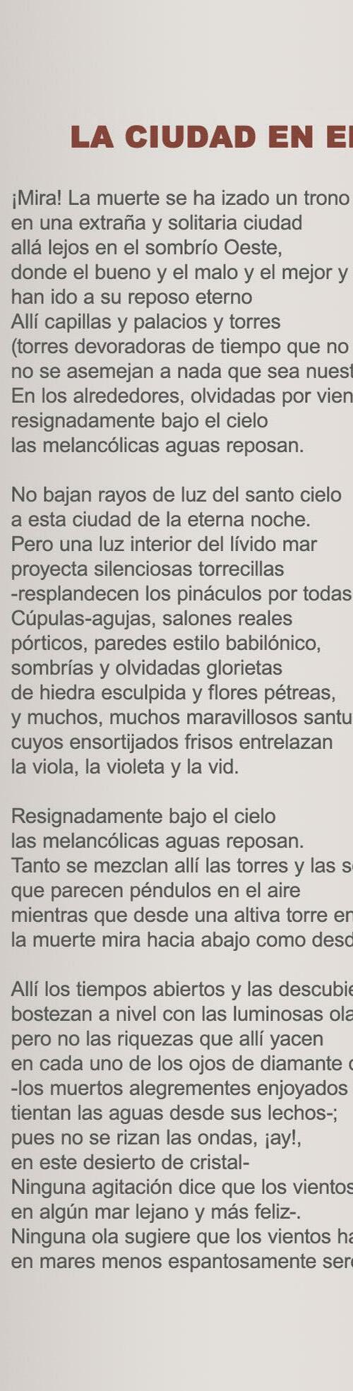 Recopilatorio que incluye los siguientes relatos de Richard Corben basados en la Obra de Edgar Allan Poe: El Gusano Conquistador, La Ciudad en el Mar, Berenice, La Durmiente y Sombra. Además de contar con los relatos y poemas originales en los que están basados.
