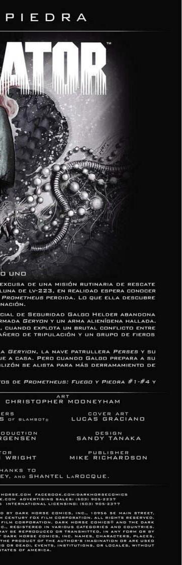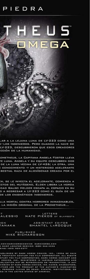 "La luna de LV-223: lugar de descanso de la condenada expedición de Prometheus, fuente enigmática de toda vida orgánica y fuente de pesadilla de destrucción final. Ahora, una nueva generación de exploradores espera descubrir los misterios de este mundo extraño y peligroso, pero lo que encuentran puede llevar a la ruina de la humanidad."