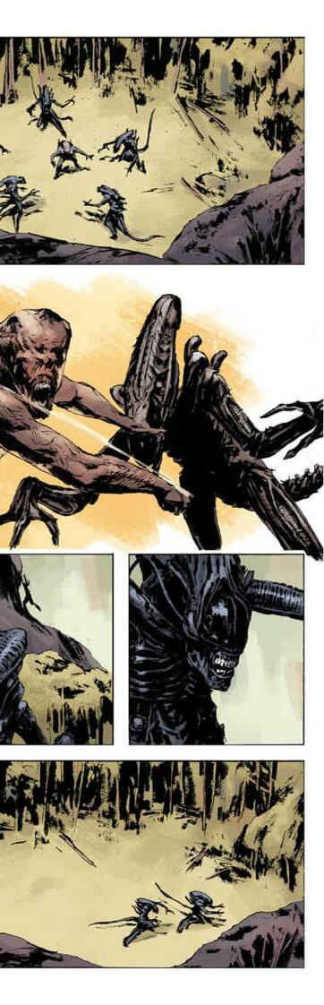 Fire and Stone es un crossover entre tres franquicias cinematográficas de terror y ciencia ficción: Prometheus, Aliens y Predator.