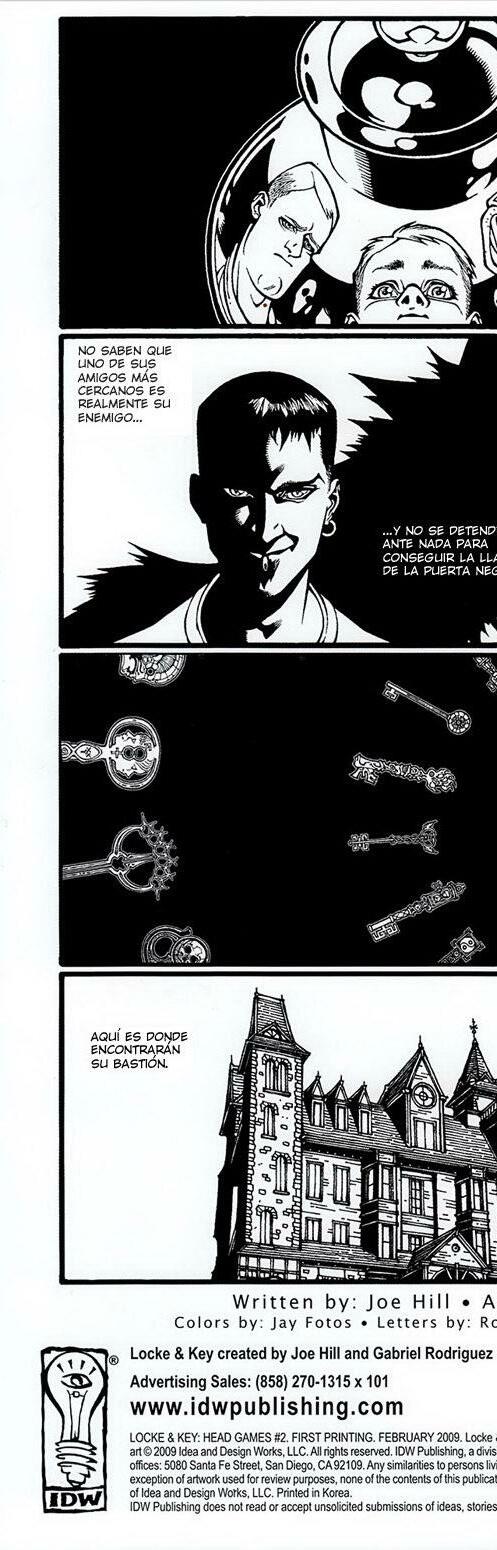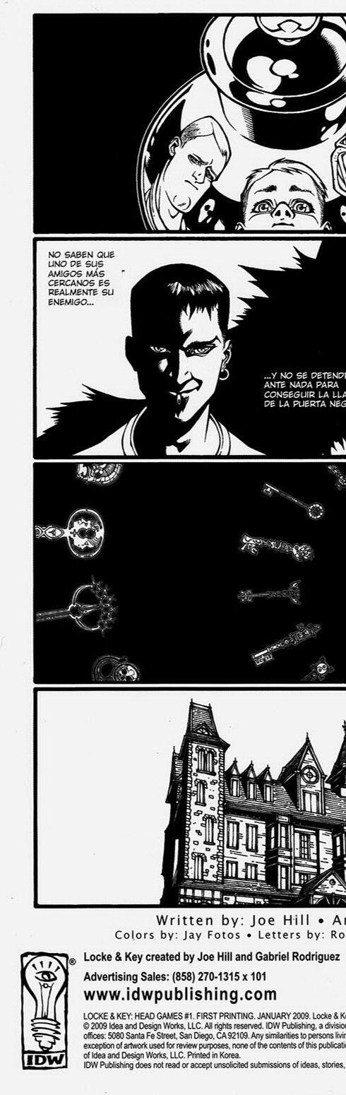 La familia Locke se sobrepone al ataque de Sam Lesser en la casona Keyhows. Los Locke parecen haber olvidado todo aquello de las llaves mágicas, pero no será por mucho tiempo. La extraña mujer del pozo ha tomado una nueva forma para acercarse a la familia. Mientras tanto, llega a la Academia Lovecraft un chico misterioso llamado Zack Wells, quien de inmediato se hace amigo de los Locke. El pequeño Bode tiene en secreto una llave que encontró tras la desaparición de la mujer del pozo, y ha descubierto cuál es el misterio que encierra. ¿Cuál será el poder oculto de la llave? No te pierdas la segunda entrega de Locke & Key. Juegos Mentales.