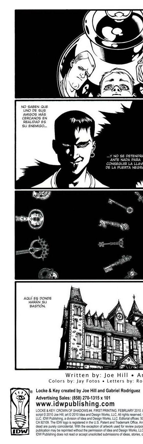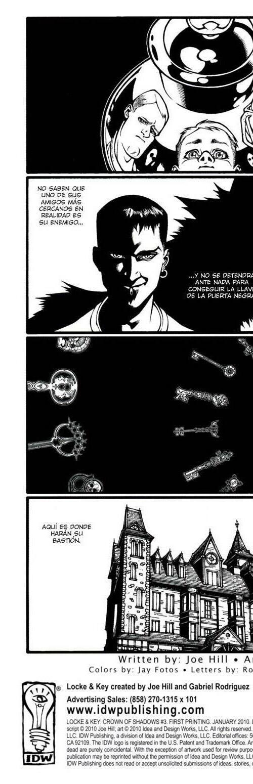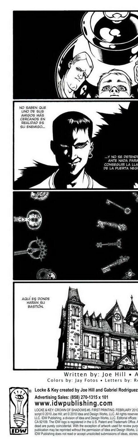 La oscuridad se apodera de Keyhouse y Dodge da vida a un ejército de maléficas sombras para conseguir lo que siempre ha buscado: la llave negra. Los hijos de la familia Locke se quedaron solos en casa y deberán enfrentar la terrible noche que se avecina. Una batalla entre luz y sombras los espera y solo Tyler tiene la llave para obtener la victoria