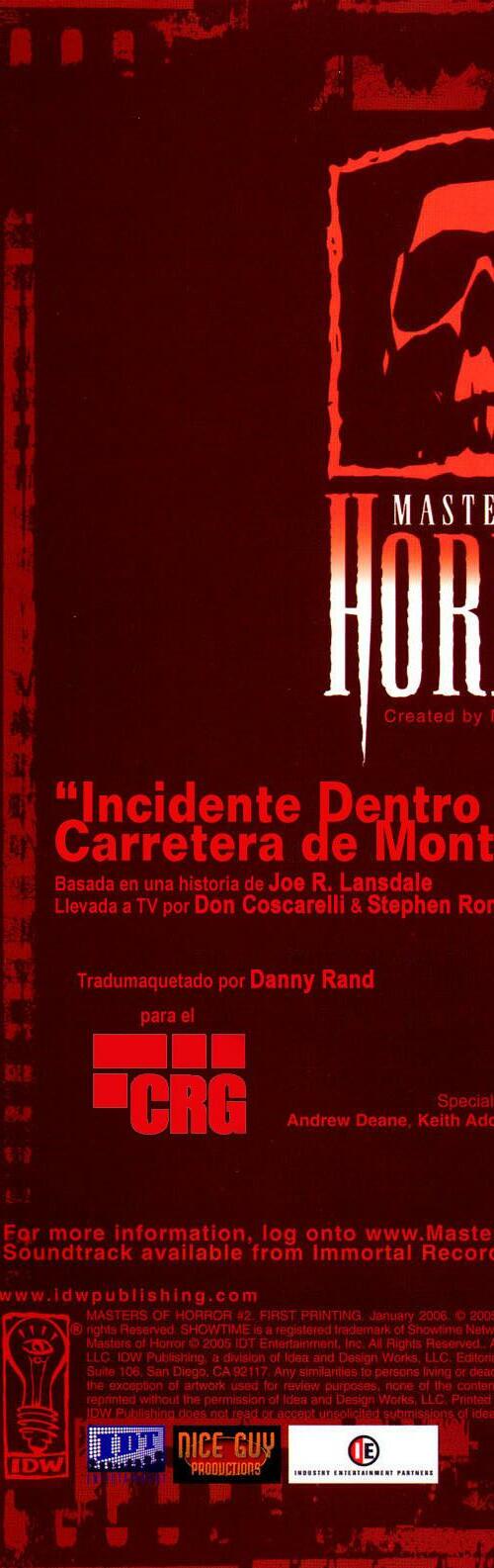 Esta colección es la adaptación de la serie de televisión homónima, donde trece de los más grandes talentos del género de terror se han reunido para contar sus sueños más oscuros en sus propios estilos únicos, entre ellos estaban Carpenter, Landis, Argento, Miike, IDW iva a hacer 12 comics, pero al final se cancelo y quedo en 4.