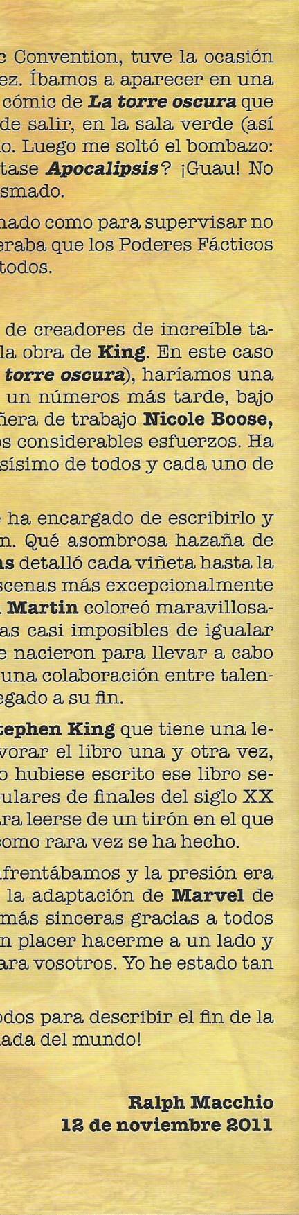 ¡Es el CAPÍTULO FINAL de la épica adaptación de Marvel de la obra maestra de terror de Stephen King! - El polvo de la última batalla de Flagg en Las Vegas por fin ha empezado a asentarse, pero la vida de alguien todavía pende de un hilo... - El bebé recién nacido de Frannie, la gran esperanza de la Zona Libre de Boulder, está infectado con la supergripe, y no hay nada que Frannie y los demás puedan hacer más que esperar... y rezar... y esperar. - Confiad en nosotros, Verdaderos Creyentes, no habrá ni un ojo seco en la casa cuando esta aclamada saga de fans llegue a su fin.