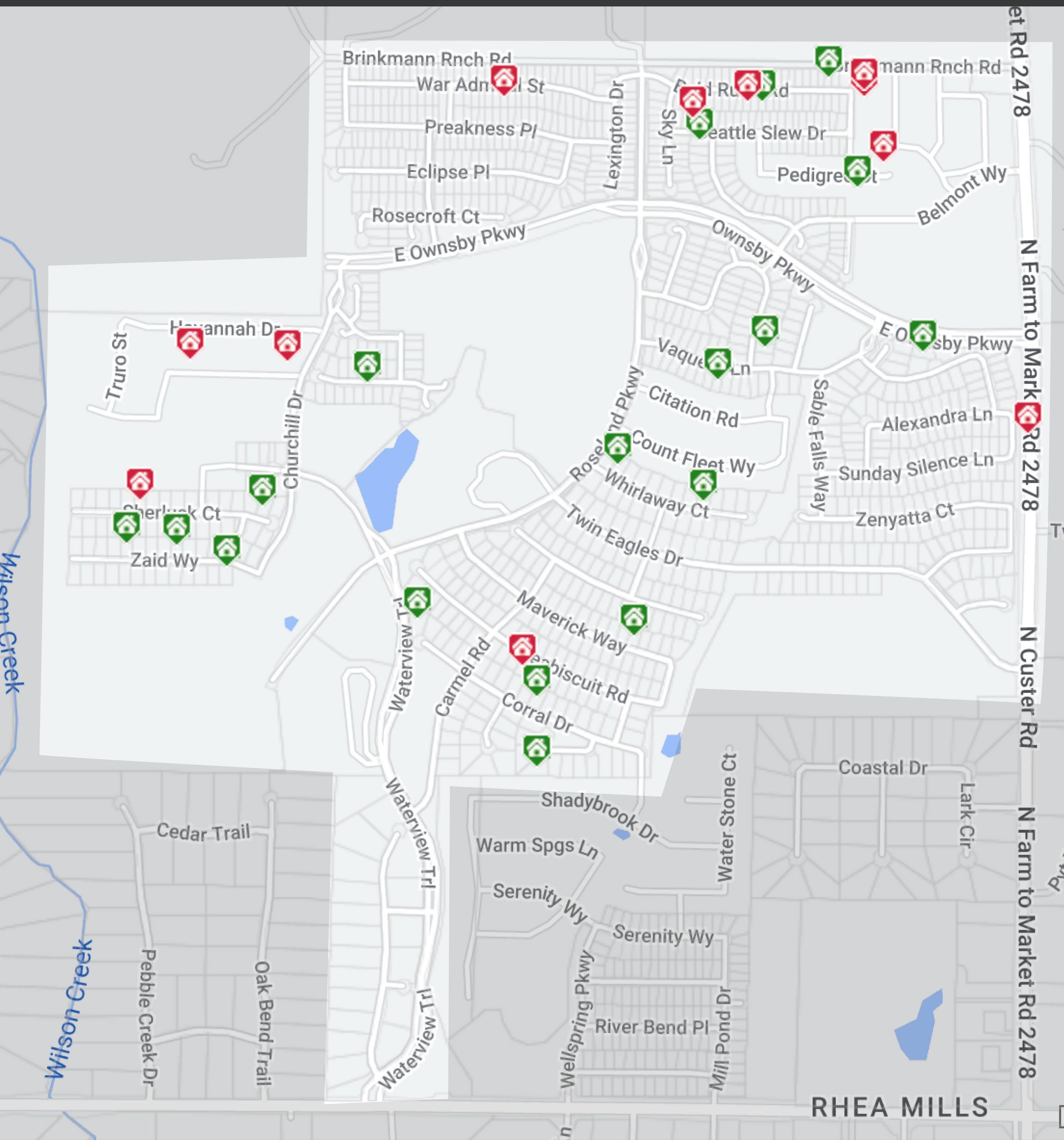 Currently there are 1 homes coming soon on the market and 44 homes under contract, 40 of which are new build homes, from Mustang Lake builders: Britton Homes, Coventry Homes, Highland Homes, Perry Homes, Tradition Homes.