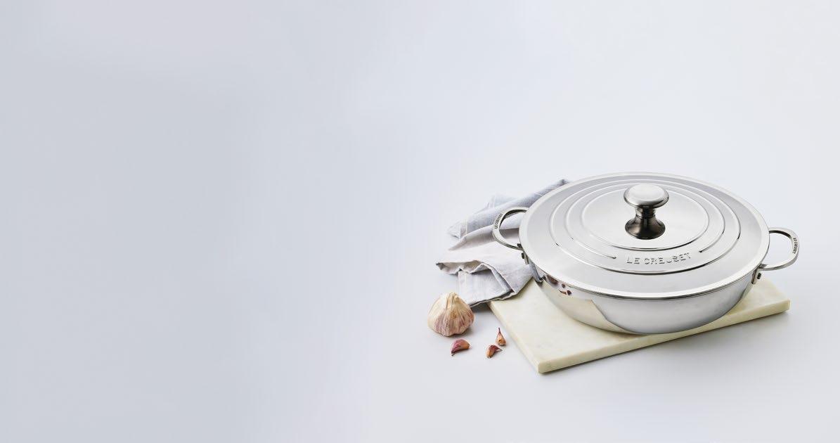 Die unbeschichtete Profipfanne aus Edelstahl ist im klassischen Le Creuset 3-Ringe-Design gehalten. Modern und zeitlos elegant ist sie ein wahres Must-have in jeder Küche. Dank der dreilagigen Konstruktion erwärmt sie sich schnell und verteilt die Wärme gleichmässig. Die Profipfanne ist ideal zum scharfen Anbraten und zaubert dabei köstliche Röstaromen. Induktionsgeeignet. EdelstahlMehrschicht-Material.