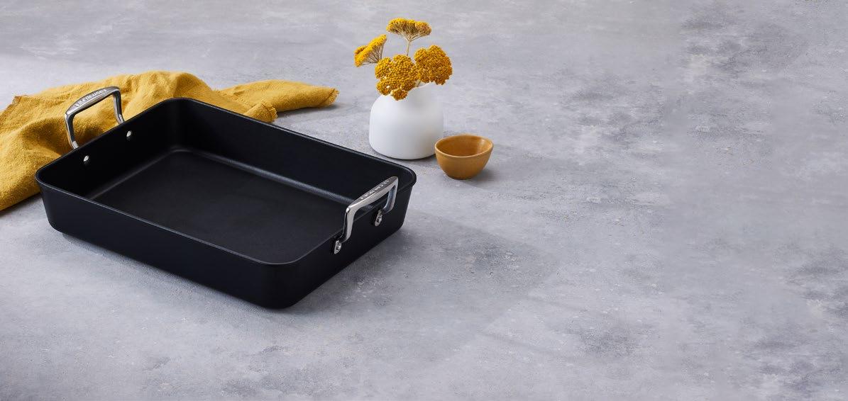Elegant und vielseitig einsetzbar für köstliche Sonntagsessen und einfache Alltagsgerichte. Zum Braten, Backen, Pochieren oder im Wasserbad kochen. Induktionsgeeignet. Aluminium-Antihaft.