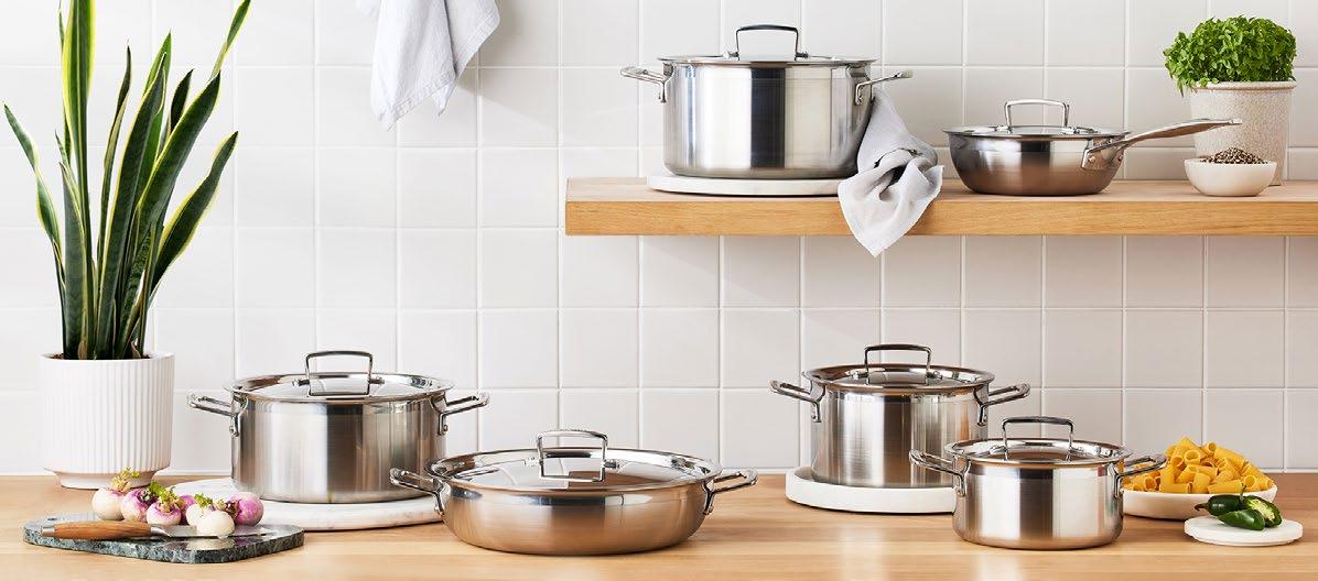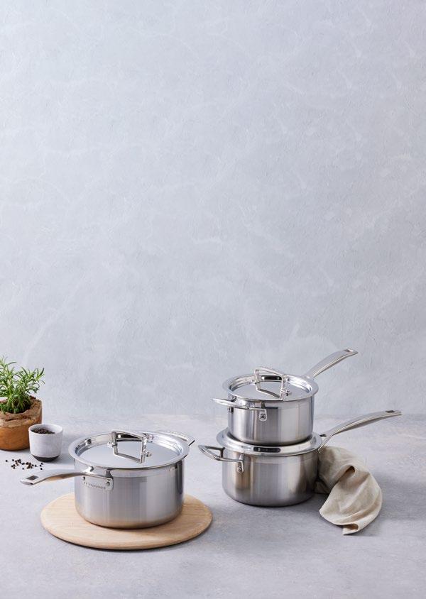 Ein vielseitiges Set, mit dem Sie alle Herausforderungen in der Küche mit Leichtigkeit meistern. Induktionsgeeignet. Edelstahl-Mehrschicht-Material.