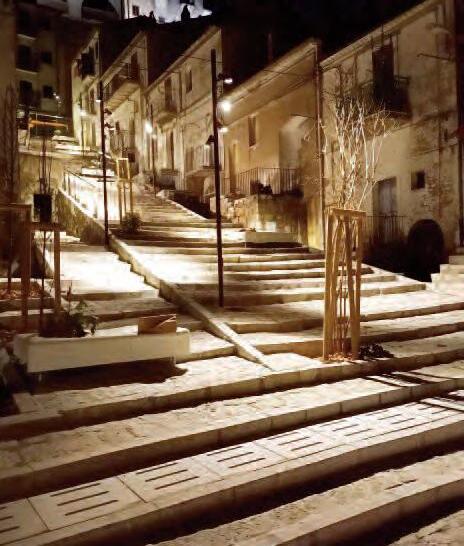 La gradinata di “Santa Sofia”, prende il nome dall’antica chiesetta intitolata all’omonima santa, situata anticamente nei pressi della sommità. Menzionata già nel 1543 durante la visita di Mons. Saraceno, nel prospetto frontale presenta una protome leonina reimpiegata nella facciata che, secondo recenti studi, è da attribuire al periodo romano. Entro i primi dieci gradini della scalinata si trova anche uno stipite di portale decorato con un giglio. Il Sindaco Fernando Scattone spiegava già che si tratta di opere rientranti nei «lavori di mitigazione del rischio idrogeologico. I tecnici hanno realizzato un buon progetto di riqualificazione». Un lavoro che parte da lontano, quando nel 2023 si ebbe la firma del decreto di finanziamento regionale per la riqualificazione della storica scalinata.