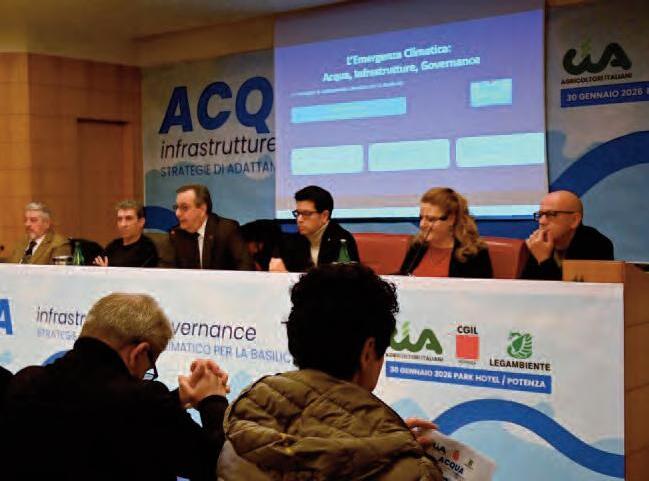è un elemento essenziale perché non garantirà la disponibilità dell'acqua fornita dalla neve in futuro quindi comunque affronteremo probabilmente un periodo estivo difficile così come è stato in passato, proprio per questo dobbiamo cambiare registro». Donato Di Stefano a nome della Cia ha parlato delle problematiche idriche in Basilicata: «In Basilicata siamo al punto in cui il grande passaggio che è quello della nascita di Acqua Sud Spa assorbe patrimoni infrastrutturali di grandi risorse di acqua che era Ex Epli. Abbiamo bisogno di completare questo processo di assestamento di uno dei gestori più grandi d'Europa con una partecipazione molto ma molto più rilevante da parte di Regione Basilicata. E' un luogo nel quale si decide il futuro della risorsa, la sua governance, il suo utilizzo e noi come mondo agricolo abbiamo bisogno di certezze. Un autorevole soggetto che è