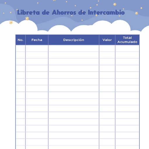 Rol de Compensación: es la sección de esta libreta en la que tu Tutor anota la cantidad total de pesetas que has ganado en cada quincena (2 semanas), detallando además cuántas pesetas quieres usar en ese momento y cuántas pesetas quieres ahorrar en tu Libreta de ahorros de intercambio. En la página 35 encontrarás la sección de Roles de compensación.