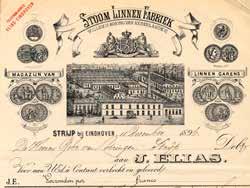 Vanaf de tweede helft van de 19e eeuw vestigden zich diverse bedrijven in Strijp. In 1856 werd een linnenfabriek gebouwd door de uit Hannover afkomstige Joseph Elias. Hij was eerder in Stratum op kleine schaal al begonnen met zijn activiteiten. Het linnen werd gebleekt op bleekvelden en gespoeld in de rivier de Gender die er vlakbij lag. Het bedrijf onderscheidde zich door technische innovaties. Het was het eerste bedrijf dat de huisweverij in