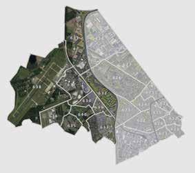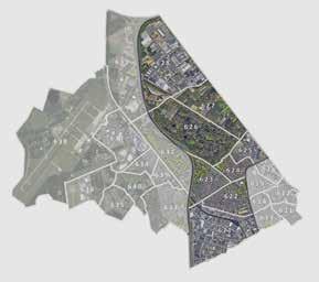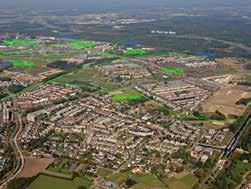 sportvoorzieningen en de parkachtige randen van het ‘dorp’.