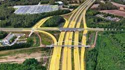 zijn plek over de verkeerswegen gereden. Er kwamen honderden toeschouwers naar dit schouwspel kijken. Als het donker is wordt de brug dynamisch verlicht.