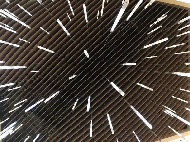 Composición orgánica V-lit formada por 150 luminarias para el atrio principal del centro comercial.