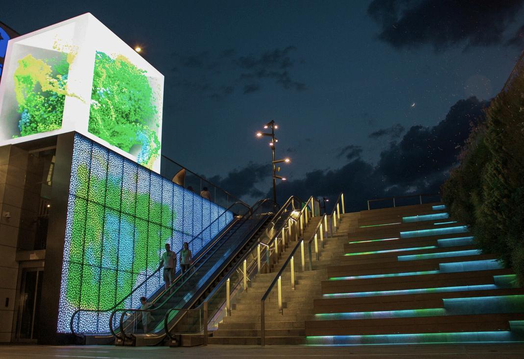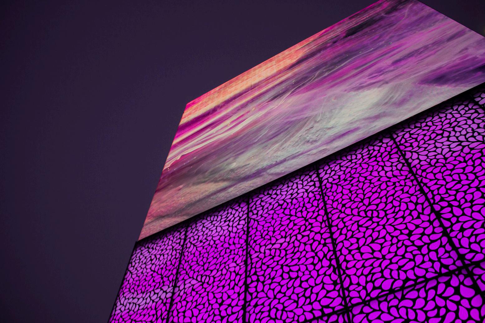 Superficies digitales que comunican, envuelven y transforman la experiencia arquitectónica a través de la iluminación digital dinámica.