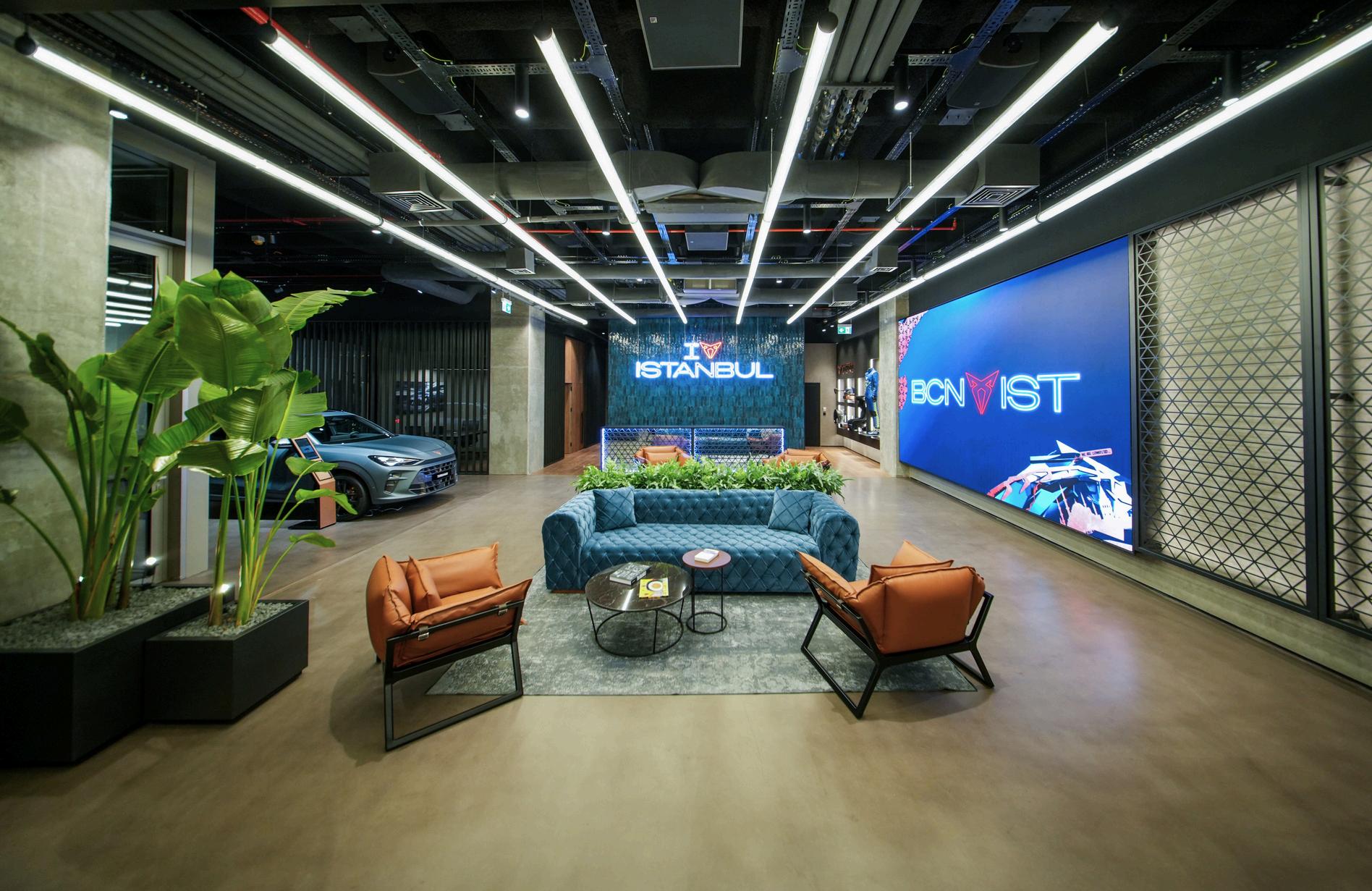 El Cupra City Garage ha sido equipado con la más avanzada tecnología audiovisual, y se encuentra distribuida estratégicamente en varias zonas del local La iluminación digital, se fusiona de manera natural con el ambiente, contribuyendo a crear una atmósfera cautivadora para los visitantes