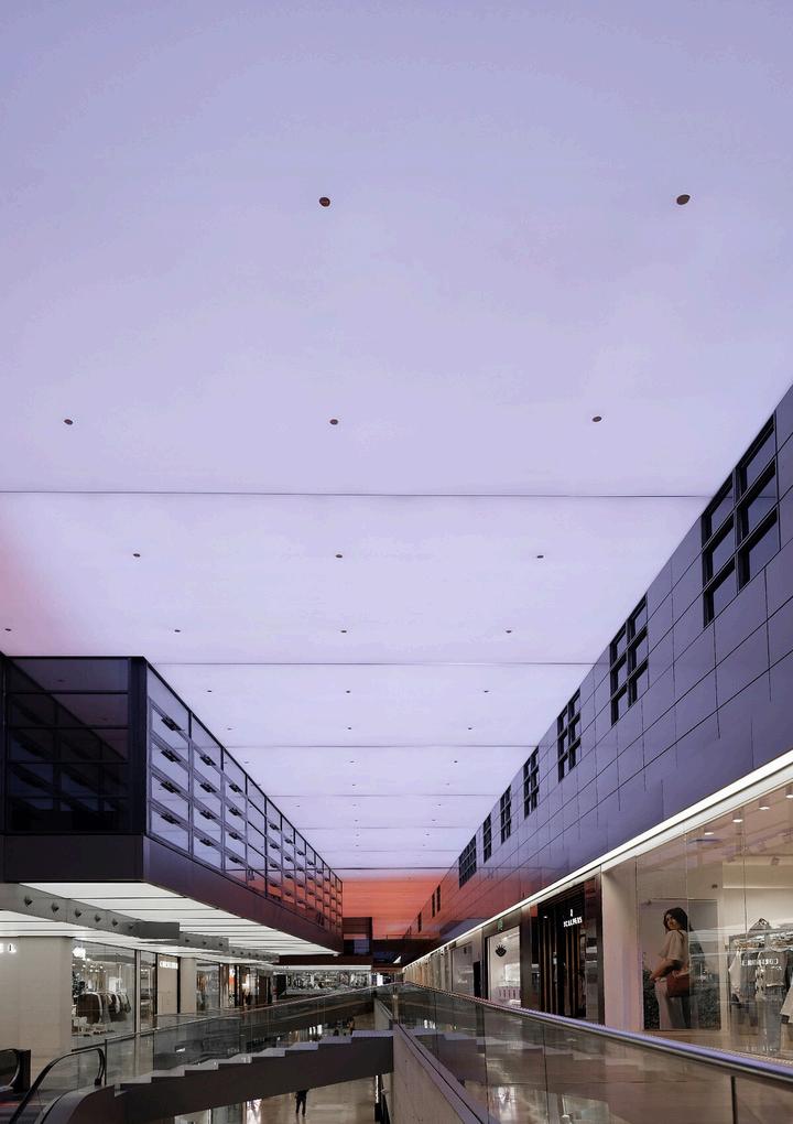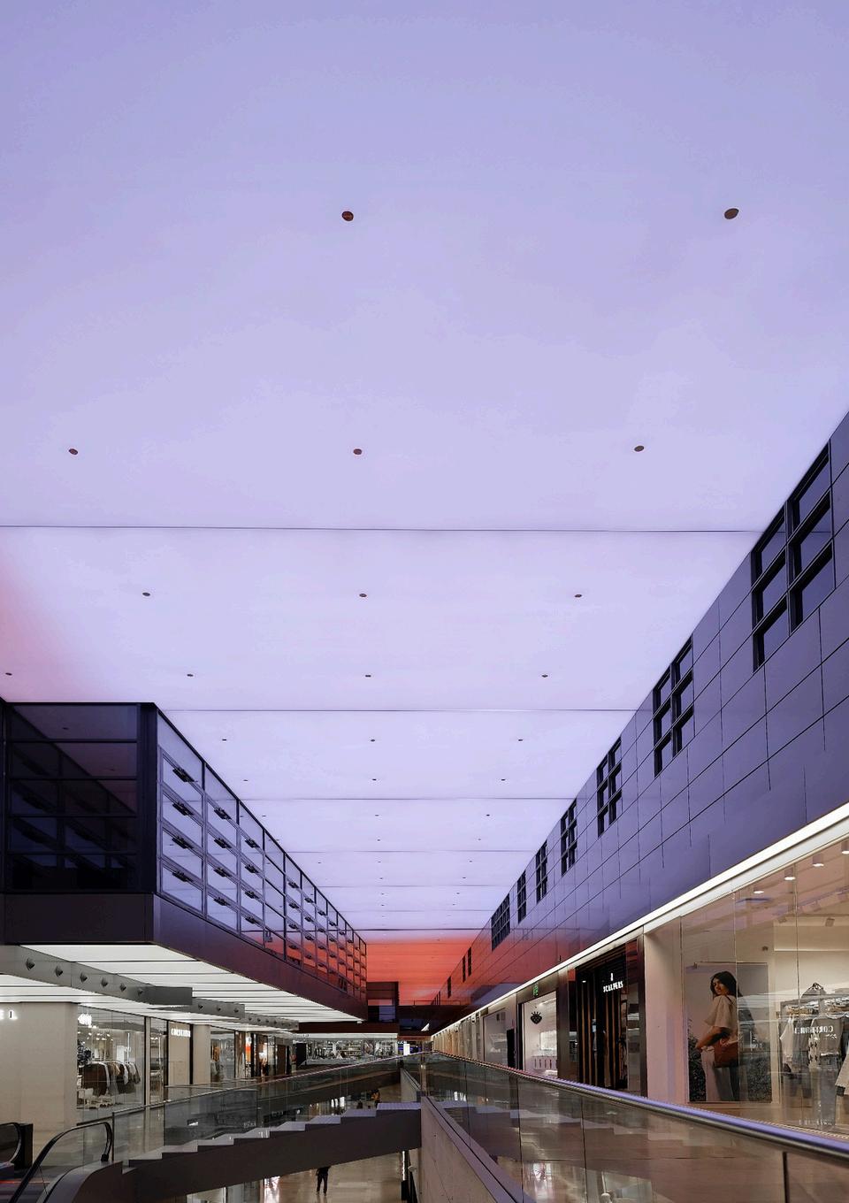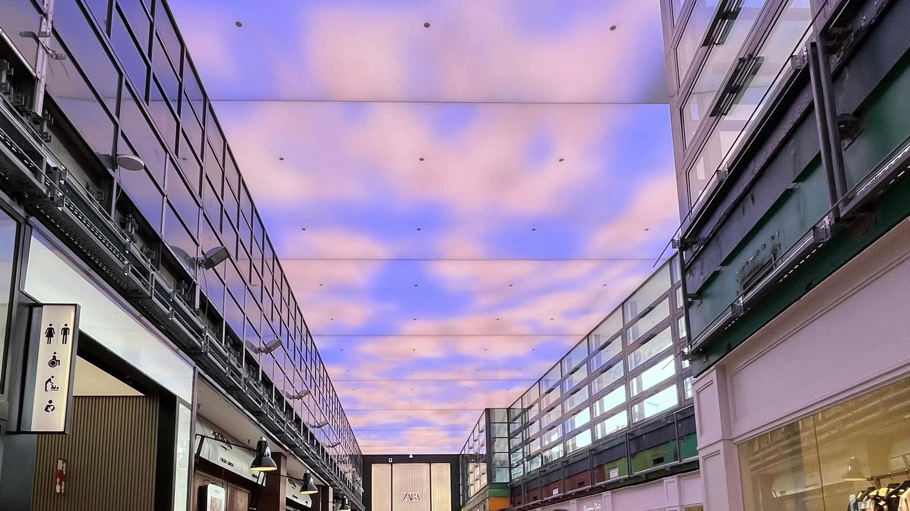 Un nuevo concepto de iluminación digital integrado en el techo dinámico del centro comercial, de más de 200.000 píxeles distribuidos en el espacio. El techo de L’illa Diagonal se convierte en un fascinante lienzo digital y a través de movimientos abstractos de masas de luz y color danzan en armonía, creando cielos animados que parecen cobrar vida